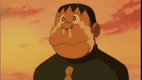The character is Gian from Doraemon, a popular anime. Gian resembles the struggles that all degens experience when they pursue an elevated lifestyle. Gian has many moments where he is rethinking his life, which perfectly portrays the how it feels to be in the trenches of solana
